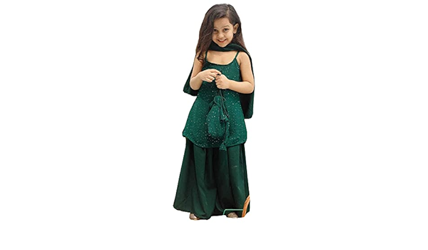 Amazon Com Indian Kids Festival Bottle Green Rayon Sequin Strap Kurti Sharara Plazzo Kurti Girls Dupatta Potli Bag Suit 463t 5 6 Yrs Clothing Shoes Jewelry