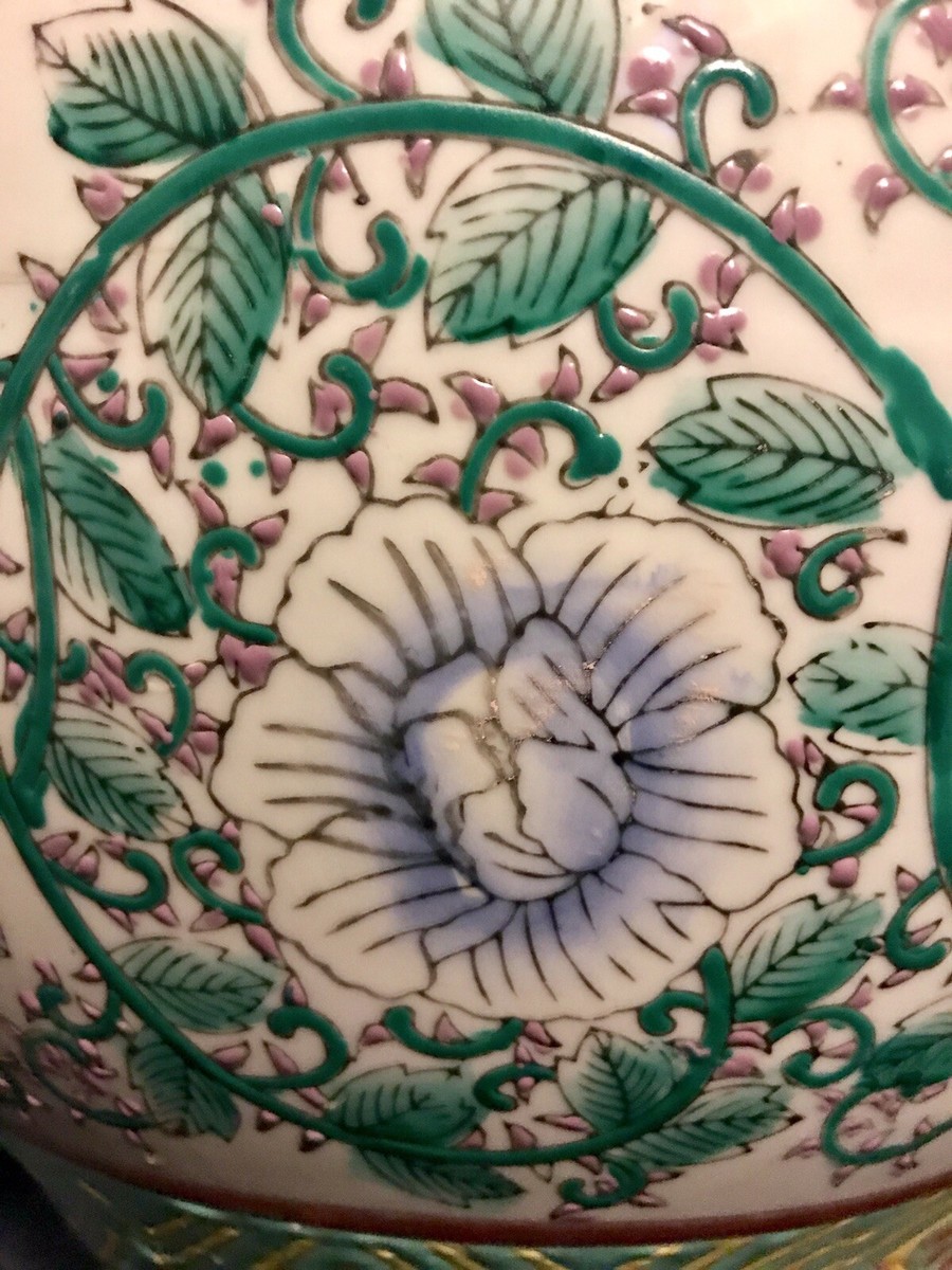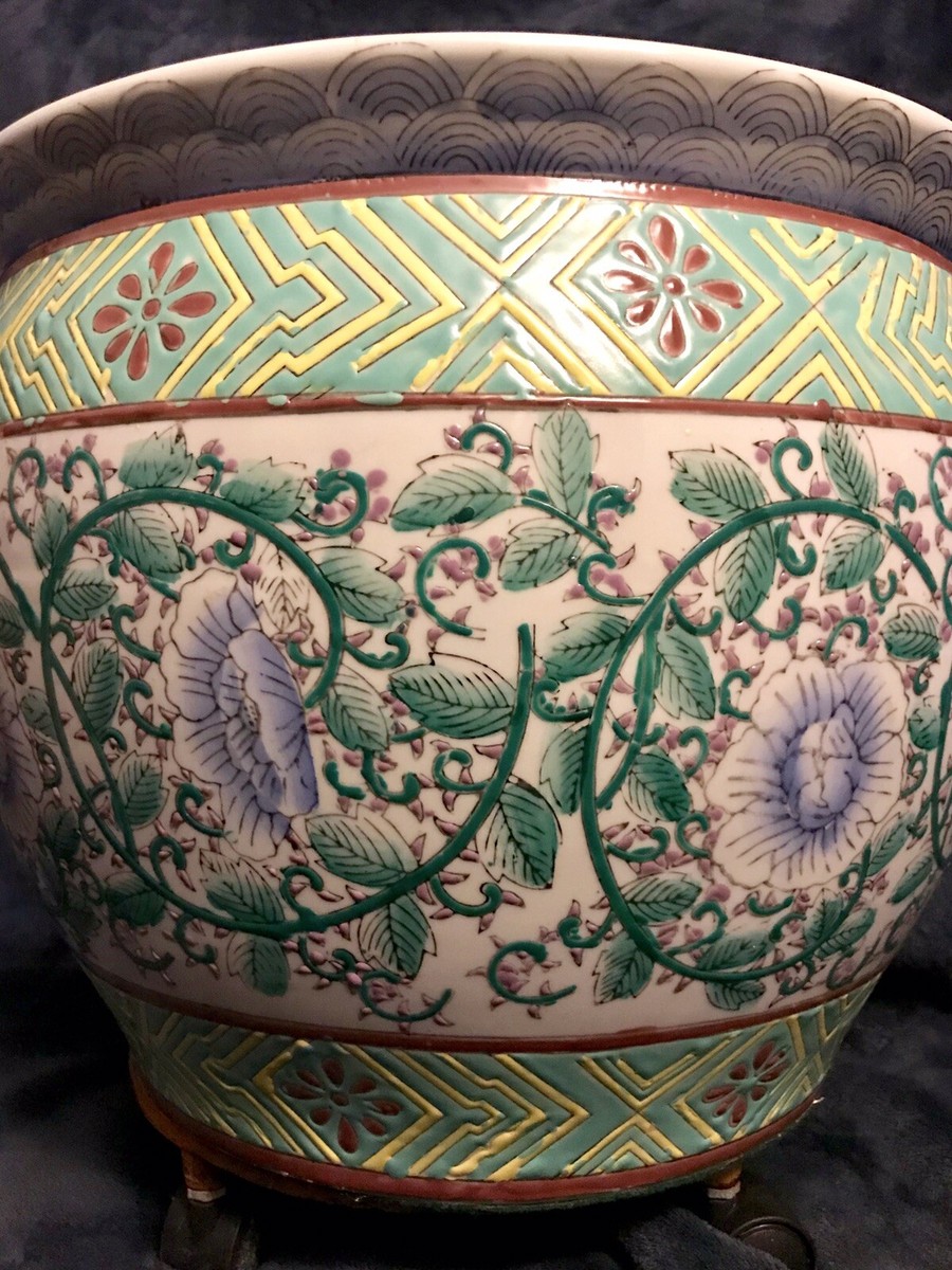 Chinese Export Hand Enameled Ceramic Planter Pot Bowl Florals 11 X14 12lbs Ebay